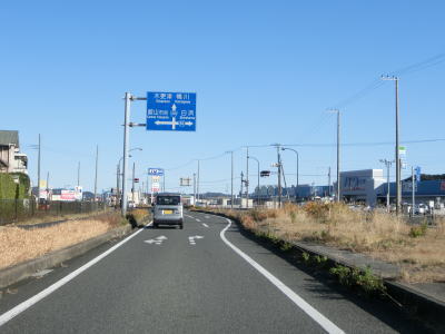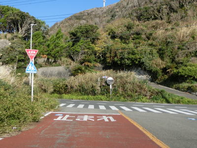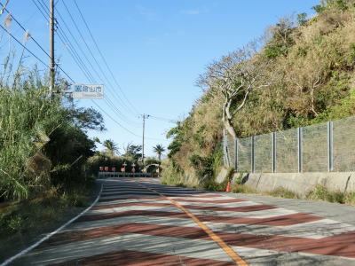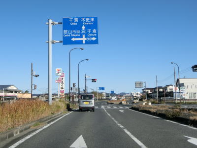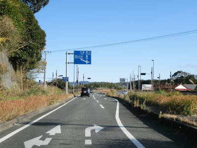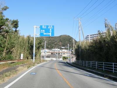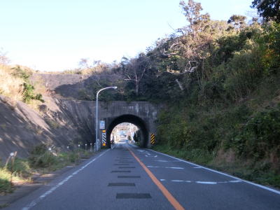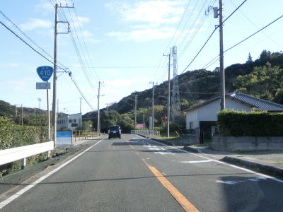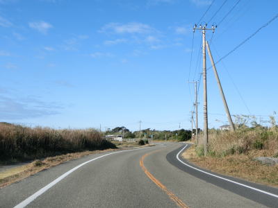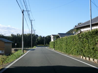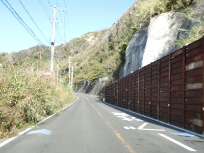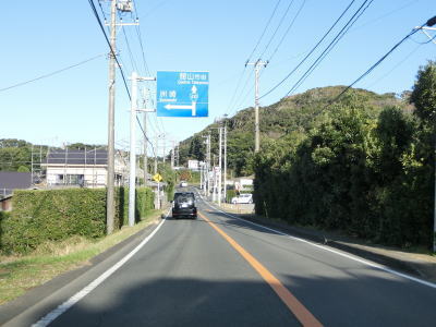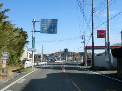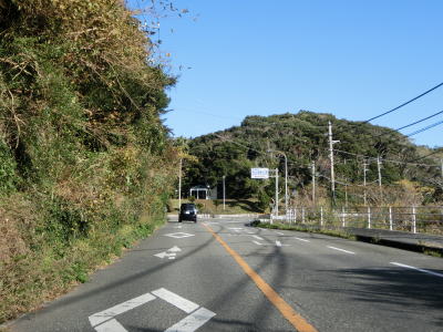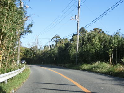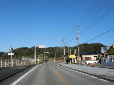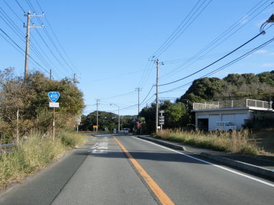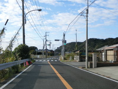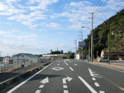 | 市道との交差点からは山が海に迫っている場所を通っているが、道路状況としては走りやすい2車線道路が続いている。右の急カーブを曲がって館山市に入ると海岸線から少し離れた内陸を走る。 | ||
