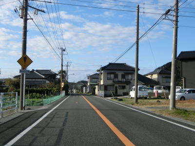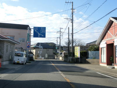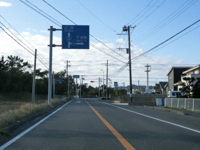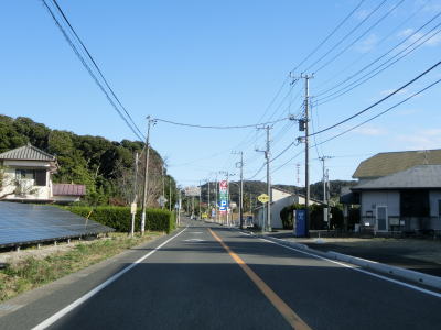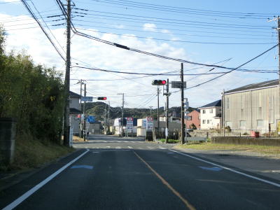 | 相浜交差点からも走りやすい2車線道路が続いている。沿線には家屋が途切れる事なく建っているが、密集地ではないので道幅も充分な幅が確保されている。市道との藤原交差点を通過する。この交差点も洲崎の出入口のひとつであるが、R410館山市街方面から右折する車両が多いにもかかわらず右折車線が設置されておらず、ここも流れが悪くなりやすい。 | ||