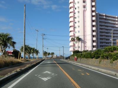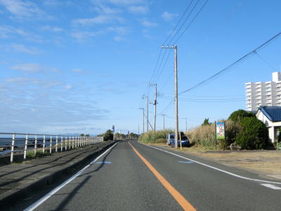 | シケイン状の連続交差点からは海岸線沿いを走る。家屋密集地帯とは異なり車線幅もやや余裕ができるため走りやすく感じる。房総半島最南端の野島崎の根元を通過する。最〇端とあって観光地化されており天気の良い休日は多くの観光客が訪れる場所である。 | ||