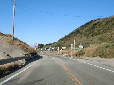| 166.伊豆大島が見える | 167.「R410この先 飛砂 走行注意」 | 168.カーブは多いが快走路 |