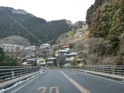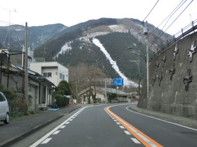 | 51.多摩川の左岸を走る | 52.山の斜面に雪が確認できる | 53.東京r201御岳駅前交差点 |