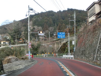 | 古里駅を離れると沿線の家屋が途切れる。緩やかな左カーブの先で東京r45将門交差点を通過する。古里駅前交差点からこの交差点までは重複区間である。2018年発行のスーパーマップルにはr45に予定線が描かれているため、いずれ重複区間でなくなる可能性がある。また、r45に甲府が案内されている事からも分かる通り、R411よりもr45の方が走りやすい道路状況である。将門交差点を過ぎると右急カーブを曲がり、次いで左カーブを曲がった後に鳩ノ巣駅前交差点を通過する。 | ||