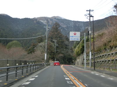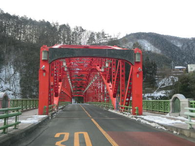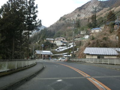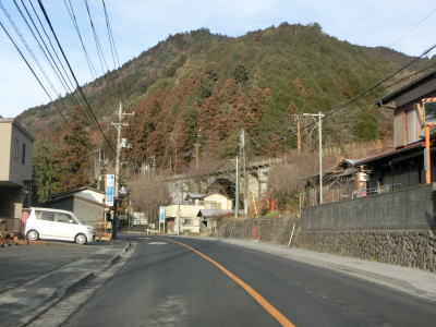 | 峰谷集落に至る町道との交差点を左にカーブしながら通過して峰谷橋を渡って馬頭トンネルをくぐる。馬頭トンネルを出た所には麦山浮橋があり、渇水時や悪天候時を除いて徒歩で渡る事ができる。 | ||