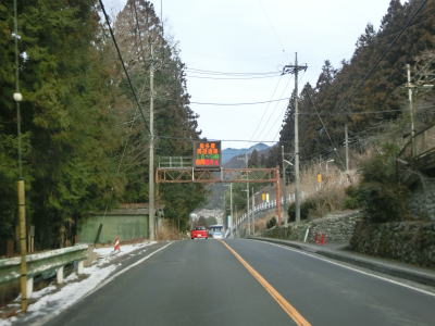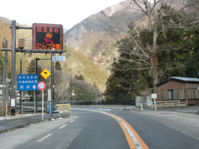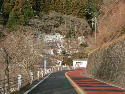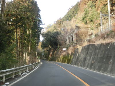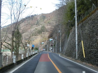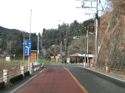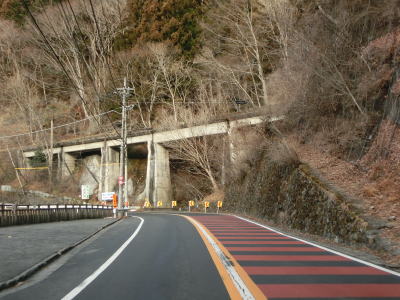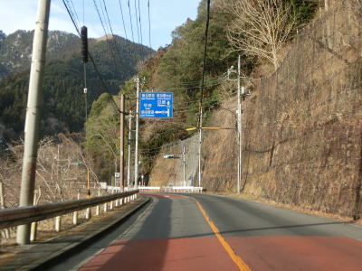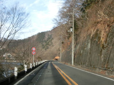 | S字カーブの先で川野トンネルをくぐる。かつてはこの辺りから対岸までロープウェイがあったが、僅か数年しか営業していなかったようである。奥多摩湖に沿って右にカーブした先でR139深山橋交差点を通過する。この交差点はR139の終点である。100番台国道の終点が400番台の国道との交差点である点に違和感を覚えなくもないが、制定当初の山梨県大月市の終点が延伸されたためである。 | ||