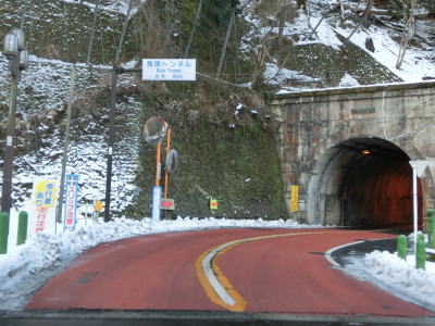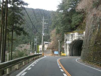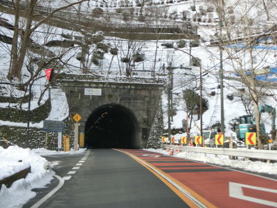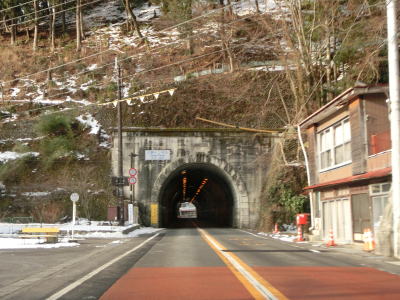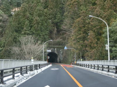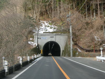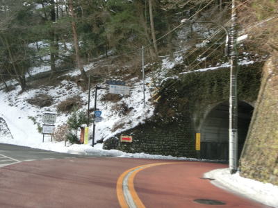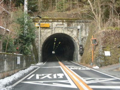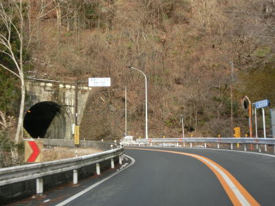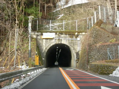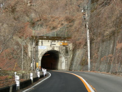 | 惣岳トンネルと板小屋トンネルを続けてくぐった後に桃ヶ沢トンネルをくぐる。勾配の緩やかなセンターライン付きの2車線道路ながら制限速度は30km/hとかなり低く設定されている。 | ||