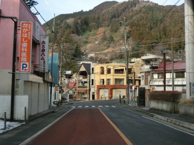 | 新氷川トンネルを出ると奥多摩町の中心部に入り、町役場や奥多摩駅の南で東京r184奥多摩駅入口交差点を通過する。多摩川の支流の日原川に架かる氷川大橋の西詰で東京r204日原街道入口交差点を通過する。ここからr204を北上すると日原鍾乳洞に行く事ができる。奥多摩郵便局の前を通り過ぎてから左カーブを曲がって南氷川橋で多摩川の右岸に移る。 | ||