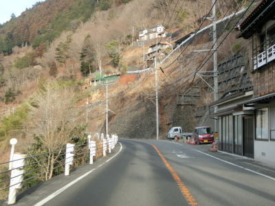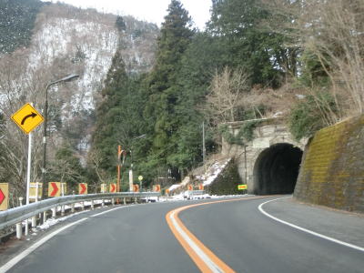 | 奥多摩湖に沿って北に向かっていると左のヘアピンカーブを曲がってから室沢トンネルをくぐり、次いで鶴の湯トンネルと女の湯トンネルをくぐる。鶴の湯トンネルの西側坑口の近くには鶴の湯の源泉がある。S字状の急カーブを曲がった後にあづまいトンネルと坂本トンネルをくぐる。 | ||