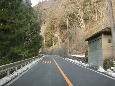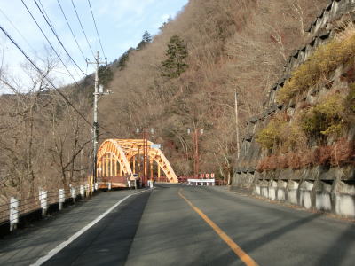 | 奥多摩湖の北岸を走っていると麦山橋を渡る。急なカーブこそないものの小刻みなカーブが連続しており見通しはあまり良くない。山間部ではあるが観光地として有名なため、休日、特に紅葉期は多くの観光客で賑わっている。 | ||