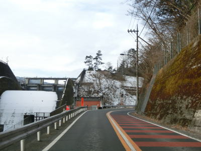 | 右カーブの先で橋梁の下を通るが、これも小河内線の遺構である。橋の近くに水根駅が置かれ、ダム建設資材などの積み降ろしが行われていた。東京r205との交差点を通過した直後に大麦代トンネルをくぐる。小河内ダムの天端もr205に指定されているが、門扉が設置されており関係者以外は通行する事ができない。また、r205の終点は南隣の桧原村にあるが、点線区間があるためダムの天端が通れたとしても終点まで車両で行く事はできない。 | ||