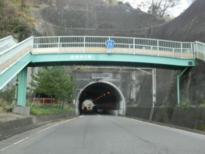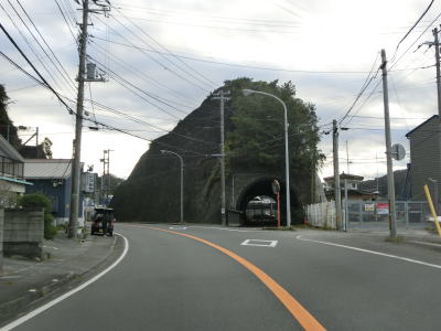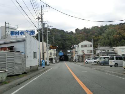 | 21.「この先遮断機あり。津波警報が発令されると通行止になります。」 | 22.住吉神社の前を通過 | 23.江浦隧道の左を通過 |
