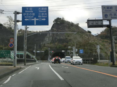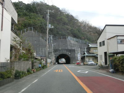 | 静浦小中一貫校を通り過ぎた後に左にカーブして江浦湾の北西に位置する大久保の鼻を回り込むようにして海沿いを走る。江浦湾に沿った集落の中を走っていると江浦隧道の山側の脇を通過する。江浦隧道は旧道に当たるが、フェンスが設置されており進入する事ができない。さらに進むともう一つ旧道のトンネルがあるが、下田方面に向かっている場合はその存在に気付かないかもしれない。そのトンネルの上部は津波時の避難所として活用されている。 | ||