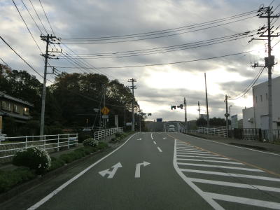 | 上りから下りに転ずる所でR136伊豆中央道の長岡北ICを通過する。その後は勾配を下って行くが、沿線の家屋が増えてくると勾配はさらに緩やかになる。交通量は決して少なくないが流れはスムースで概ね走りやすい道路状況である。 | ||