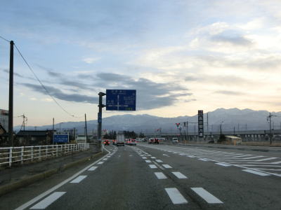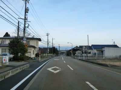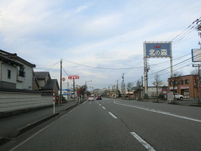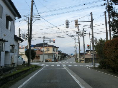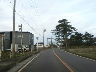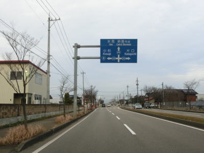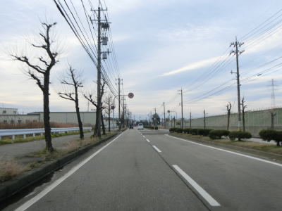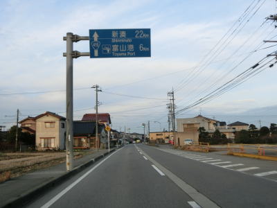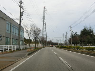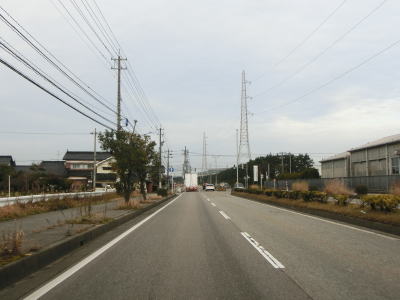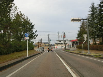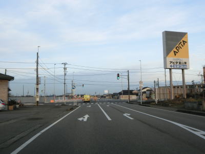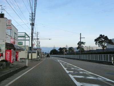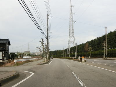 | 終点の北馬場交差点から約14.3km走ると市境を通過して射水市に入る。市境と言っても峠でもなければ河川でもない場所で、周囲には家屋もあるので市境感は薄い。射水市に入ってからも道路状況と周辺の風景に変化はなく、センターライン付近に融雪水パイプが埋め込まれている2車線道路を走る。富山r204足洗交差点を通過して少し走ると足洗潟公園の北側を通る。 | ||