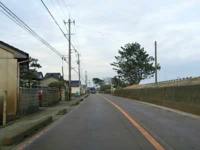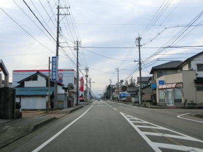| 四方交差点から100m程進むと市道との四方南町交差点を通過するが、直進は直進だが右斜め前方に進むという交差点の形状である。富山r207四方新出町交差点を通過して右、左とカーブした後に市道が接続している左カーブを通過する。その先でr207のバイパスとの交差点を通過するが、信号機も案内標識も設置されていないため県道が交差しているようには見えない。r207バイパスとの交差点からは海沿いを走っているが、防潮堤(?)があるため海は全く見えない。 | ||