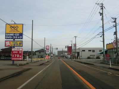 | 中央町交差点からはアーケード街ではなくなり、歩道のある普通の対面2車線道路を西の方角に向かって走る。これまでは概ね海沿いを言える場所を走っていたが、ここからは能登半島の根元を縦断しているため内陸に向い、約1.0kmでR160幸町交差点を通過する。 | ||