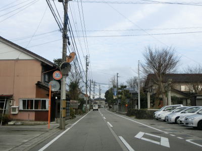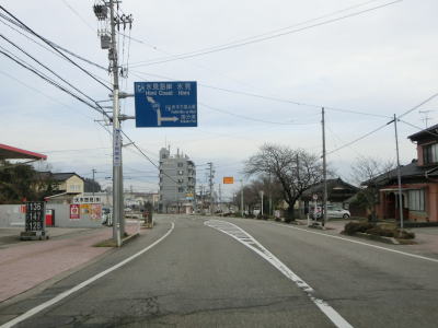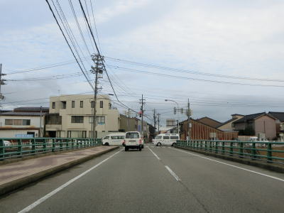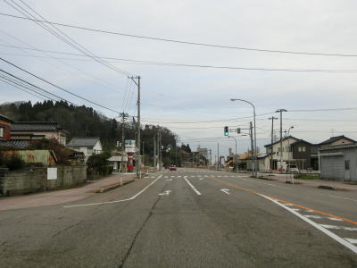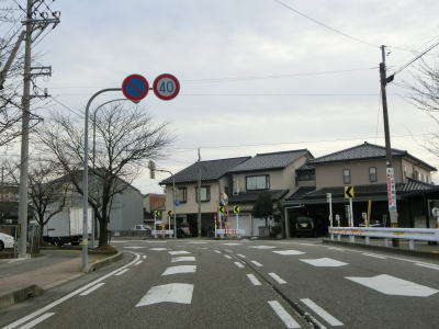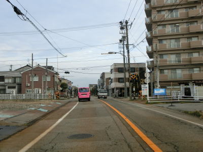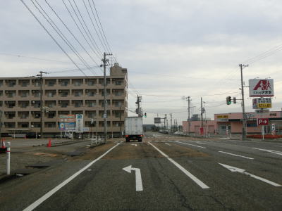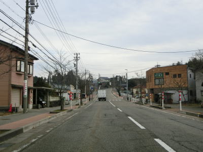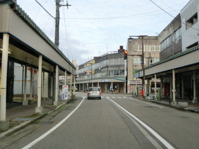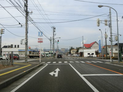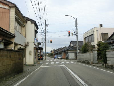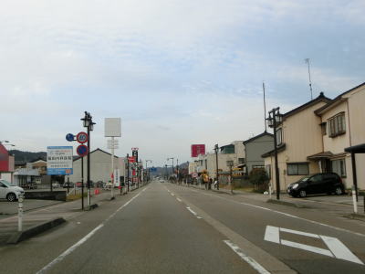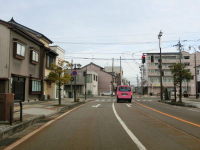 | 歩道のない狭苦しい2車線道路を走っていると八幡橋を渡って富山r76八幡橋交差点を通過する。氷見市の市街地を北上していると富山r301氷見駅口交差点を通過し、次いで市道との伊勢大町交差点を通過する。r301は氷見線の終着駅である氷見駅を結ぶ停車場線だが、伊勢大町交差点に接続する市道の方が道路状況が良い。 | ||