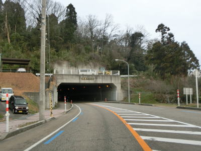 | 緩やかな上り勾配からほぼ平坦になった状態を走っていると緩やかな左カーブを曲がりながら市道との国分1交差点を通過し、左カーブの先で富山r245国分交差点を通過する。r245を走れば富山r24との交差点に至る。 国分交差点を過ぎてすぐに雨晴トンネルをくぐる。トンネルの手前に交差している道路が旧道だが、現在でも通行できるようである。旧道には雨晴隧道があり、その上には眺望を売りにしたカフェがある(しかも、トンネルの上とは思えない程の立派な建物である)。 |