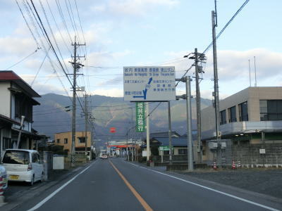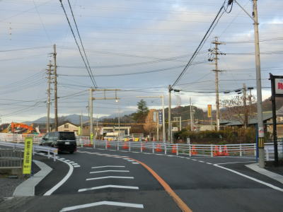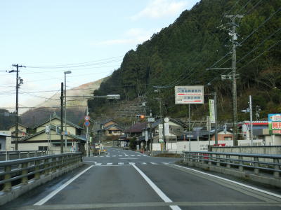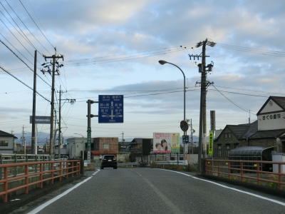 | 脛永橋を渡り終えると歩道がなくなるが、道路工事が行われているようなので揖斐駅周辺と同じように歩道が設置されるものと思われる。緩やかな勾配を上りながら右にカーブして岡島橋を渡る。下を流れているのが揖斐川である。 岡島橋を渡り終えると揖斐川町の中心部に差し掛かるが、養老鉄道の揖斐駅は中心部からやや離れた位置にある。かつては名鉄揖斐線の本揖斐駅があったが、2005年に廃線となっている。 桂川橋を渡った先でR303上新町交差点に至る。案内標識にR417のおにぎりが表記されていないが、左折してR303との重複区間を坂内方面に進む。案内標識はおそらく日光による経年劣化のため肝心な文字とおにぎりが読み取りづらくなっている。直進の谷汲山方面は岐阜r251であったが、バイパスが開通して指定を外れている。 |