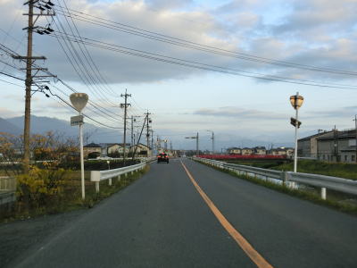 | 岐阜r217赤坂新橋交差点を通過してからも杭瀬川に沿った2車線道路が続く。川の反対側も一段低くなっており堤防道路のような雰囲気である。池田町に入ってからも道路状況は変わらないが、杭瀬川からは少し離れる。 | ||