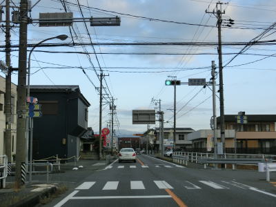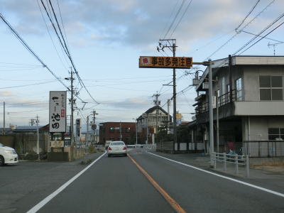| 岐阜r256・r269池野駅西交差点を通過する。交差点の名称が示す通り、池野駅の西に位置しており、東に延びるr269が停車場線である。その北の池野東町交差点の前後は緩やかにカーブしているうえに交差点が連続しているため事故多発地点のようである。養老鉄道と少しだけ接した後は池田町の中心部に差し掛かるせいもあって沿線に家屋が建ち並んでおり狭苦しく感じられる。 | ||