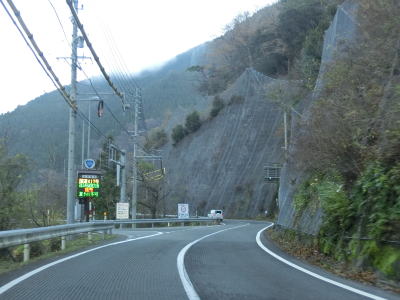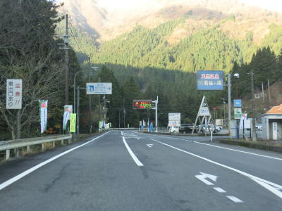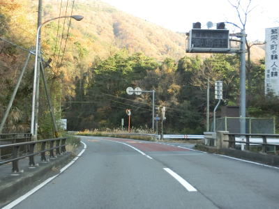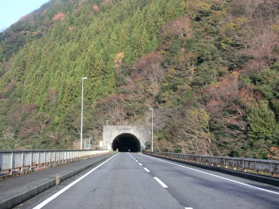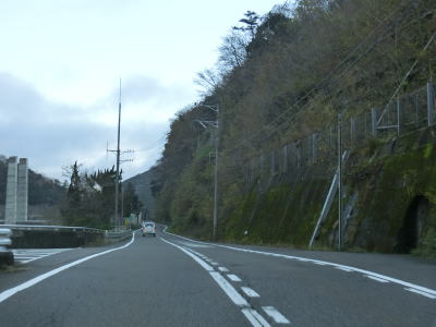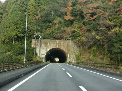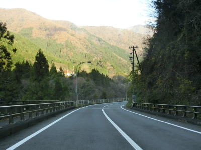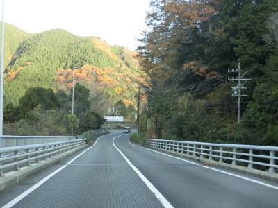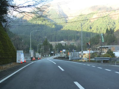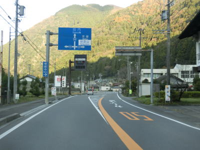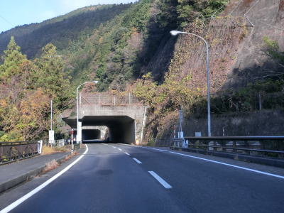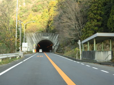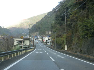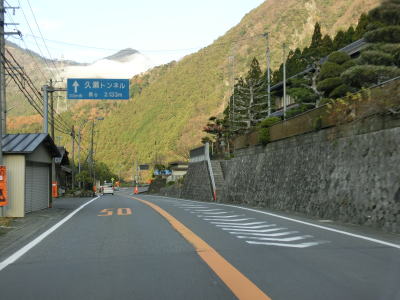 | 緩やかな上り勾配の2車線道路を走って乙原集落を通り抜け、旧道が交差している右カーブを曲がると久瀬トンネルをくぐる。揖斐川沿いの旧道は全て町道に降格している。久瀬トンネルを出ると緩やかに下って東津汲集落を通る。 | ||