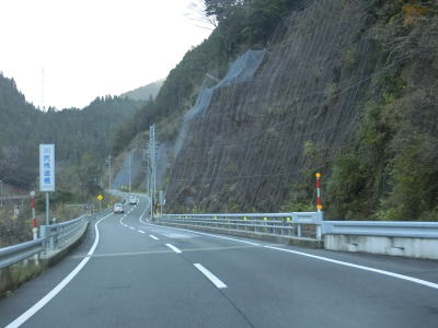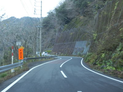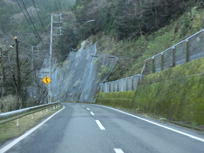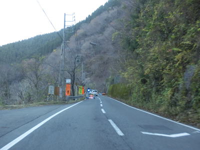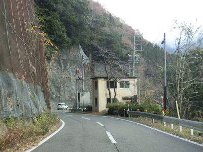 | 58.奥いび湖の湖畔を走る | 59.法面崩落(?)のため片側交互通行規制 | 60.「横山ダムから2km」 |