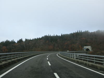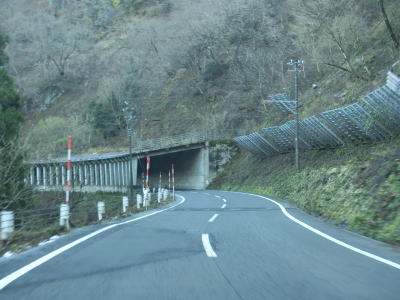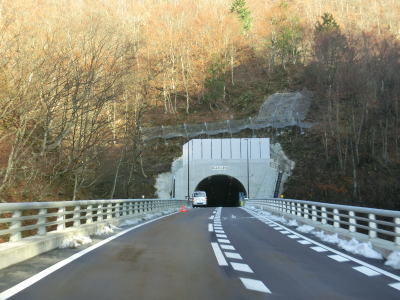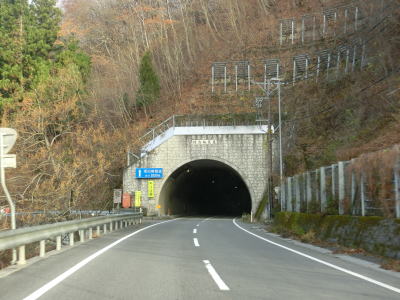 | 足羽川の右岸を下っていると鷹巣谷橋で左岸に移ると同時に田代第三トンネルをくぐり、少し走ってから田代第二トンネルと田代第一トンネルをくぐる。田代第三トンネルから北の区間は冠山峠道路よりも先に供用されており、前回(2018年)の走行時も通っている。トンネルのそのものは変化は見られないが、白線が引かれており落石防止対策が施されていた。 | ||