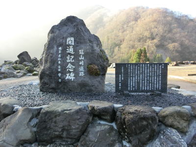 | 91.かつての端点付近に簡易パーキングあり | 92.冠山峠道路 開通記念碑 | |