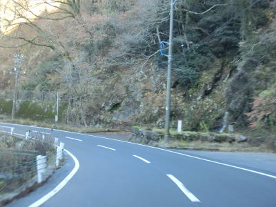 | 奥いび湖大橋交差点からはR303から分岐して単独区間となって湖畔を走る。小さな沢を渡りながらヘアピンカーブを曲がり、次いで右の急カーブを曲がる。センターライン付きの2車線道路で勾配は緩やかではあるが、急なものを含めてカーブが多く見通しはあまり良くない。 | ||