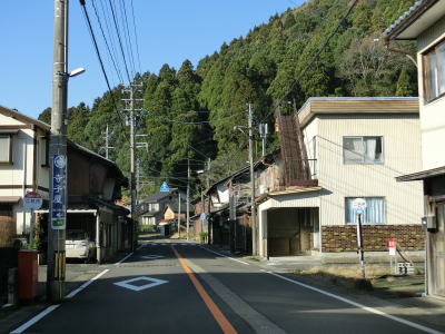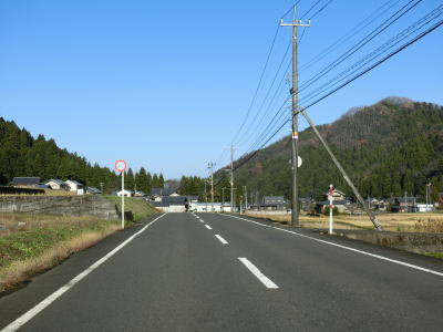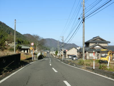 | R476から分岐すると走りやすい2車線道路に変わる。魚見川に架かる板垣橋を渡って緩やかな上り勾配の2車線道路で板垣集落を通り抜ける。集落の中ほどの右前方にトンネルの坑口が見えるのは2024年に開通予定の板垣坂バイパスである。バイパスが建設中とは言えセンターライン付きの2車線道路であり、特に酷道という訳でもないが、車線幅が狭く大型トラックでは走りにくいと感じるかもしれない。 | ||
