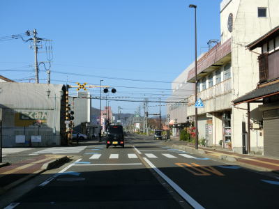 | 旧織田町の中心部に向かってやや急な勾配を下っていると景色が開けると同時に勾配が落ち着く。廃線となった福井鉄道鯖浦線の終着駅であった織田駅の北でR365織田北交差点に至る。案内標識にR417のおにぎりが表記されていないが、ここから西、越前海岸(梅浦)方面のR365に重複している。そして、この先R417が表に現れる事はなく、この織田北交差点が実質的な終点と言える。 | ||