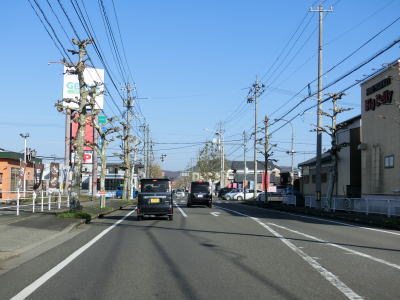 | 平坦な直線道路を西進していると朝日大橋で和田川を渡って越前町に入る。市町境の河川だが日野川に比べると規模は小さい。越前町に入ってさほども走っていないが、福井r28西田中交差点付近から町の中心部と言える場所に差し掛かる。 | ||