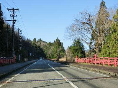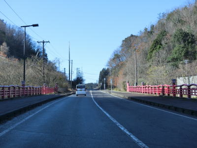 | 上戸大橋付近からは上り勾配が始まり、常磐峡大橋、道並橋、神田橋、行通橋を次々に渡る。赤い欄干が特徴的な橋が続くが、天王川に架かっているのは上戸大橋と常磐峡大橋だけである。行通橋を渡り終えて少し走ると旧道と思われる町道との交差点を通過する。 | ||
