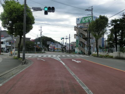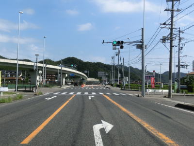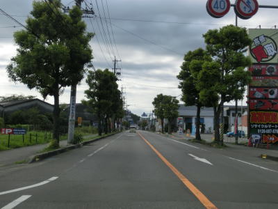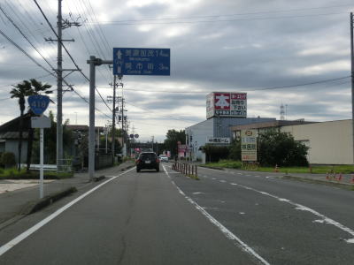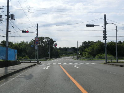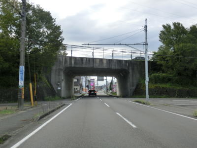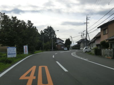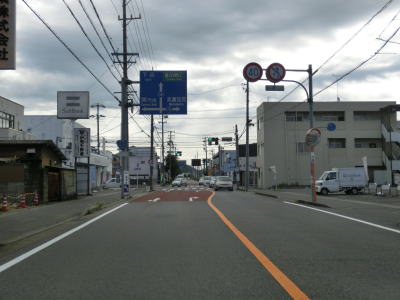 | R156小瀬6番町交差点からも2車線道路が続いているが、関市の市街地に近いせいもあって交通量は一気に増えた感じがする。約200m進むと東海北陸道の下をくぐり、家屋だけでなく商業施設もある状態を走る。信号のない交差点や店舗の出入口が多いためか、「出入車 追突注意」という警告が何ヶ所も立てられている。出入している車両そのものだけでなく出入車がいる事で減速や停止する車両への追突に注意という事だろう。 | ||