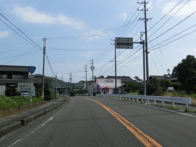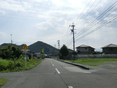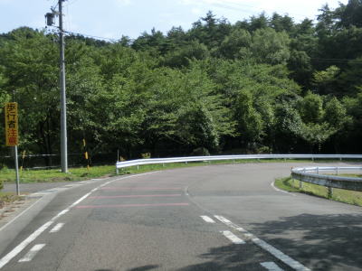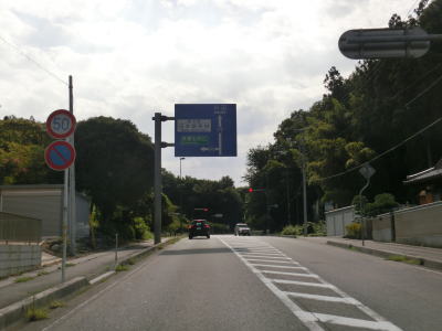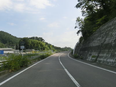 | 右にカーブしてR41美濃加茂バイパスから離れる。山楠公園付近にはヘアピンカーブが2ヶ所あり、一気に標高を下げる。平地(と言っても標高は100mある)に下りるとごく緩やかなカーブの2車線道路を走る。100m先の幅員減少を警告する標識が立っているが、その100m先はR41に突き当たる場所でもある。 | ||