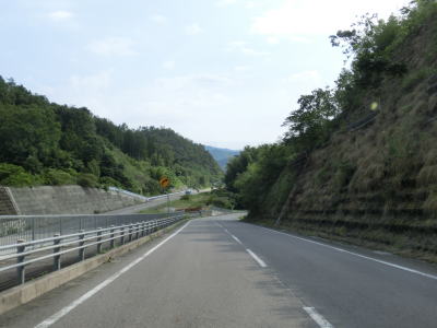 | 210.ヘアピンカーブで標高を下げる | 211.水田の間を走る快走路 | 212.幅員減少の警告 |