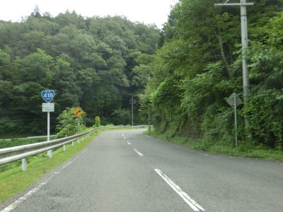 | JR中央本線以南の区間は緩やかなアップダウンとカーブを繰り返す2車線快走路が続いている。快走路を走っていると岐阜r66佐々良木上平交差点を通過するが、交差点の南東には道の駅「そばの郷らっせぃみさと」がある。“らっかせぃみさと”ではない。R418やr66の交通量はさほど多くないが、行楽シーズンともなれば混雑している道の駅である。 | ||