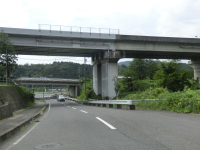 | 跨道橋の下でR19との接続道路(なぜか国道に指定されてない)とのT字路を一時停止して左折する。道なりに進むという構造ではないにもかかわらず案内標識が設置されていないのでR418トレース時は注意である。逆方向の走行であれば案内標識が設置されている。 接続道路との交差点からも2車線道路が続いており、右にカーブしながら7%の勾配を下り、岐阜r421交差点を通過した直後にJR中央本線の下を通過し、そしてr421が分岐する。 |