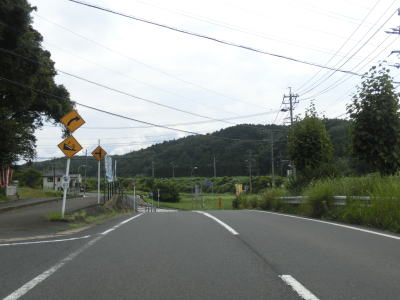 | 岐阜r394交差点からは直線かつ平坦な状態となり、沿線に建物が密集していないせいもあってかなり見通しが良い状態である。r394が恵那市街地方面に分岐して少し走ると藤川に沿ってカーブが多くなるが、それでも走りやすいと言える範疇である。藤川沿いを緩やかに下っていると勾配が少し急になり中央道の高架下を通過する。そのすぐ先でR19の跨道橋の下を通過する。 | ||