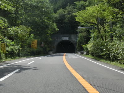 | 裏山交差点を過ぎると上り勾配となって旧岩村町の中心部を離れる。整備された2車線道路だが上り勾配が長いためかさほど距離は長くない登坂車線が設置されている。登坂車線が本線に合流した直後に全長1350mの新木ノ実トンネルを通過する。木ノ実トンネルのある旧道はトンネルの前後に簡易ゲートが設置されているようで通り抜けできない。 | ||