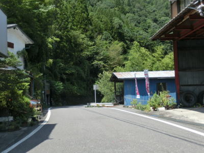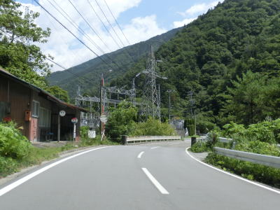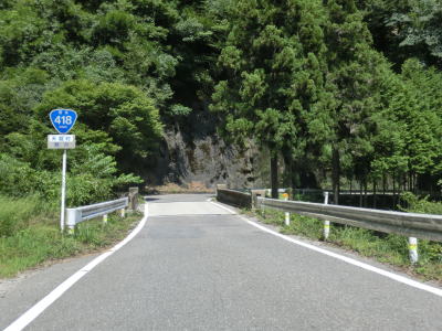 | 早木戸川の谷筋を走っていると阿南町の矢野集落や天龍村の梨畑集落に至る町(村)道(林道?)との交差点を通過する。この町(村)道か林道かわからない道路は天龍村の中心部に繋がっている。R418をその後少し走ると町村境を通過して天龍村に入り、その直後にセンターライン付きの2車線になるが、村の中心部までどころか300m程で終わってしまう。 | ||