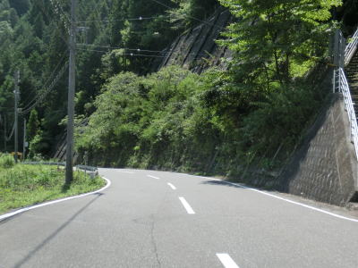 | 1.0〜1.5〜2車線と広狭を繰り返しながら早木戸川沿いを走る。谷筋を走っている距離が長いが日当たりの良い場所が多く鬱蒼としておらず雰囲気は明るい。長い狭路区間が続いているものの交通量が少ない意外に走りやすいとすら思えてしまう。 | ||