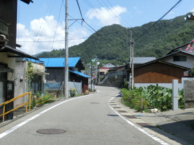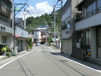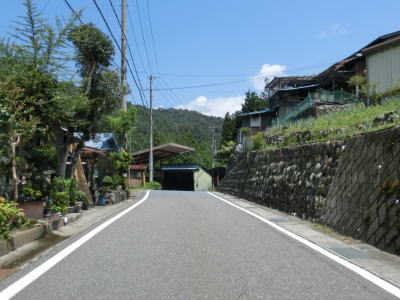 | 386.天龍村平岡 | 387.平岡集落(=天龍村中心部)に入る | 388.家屋密集地を走る狭路 |