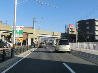 | 亀首町横枕交差点からの緩やかなアップダウンを通過すると東海環状道の高架をくぐる。愛知r348西中山稲場南交差点から先は2車線ながら家屋が密集した中を走っており、大型車両であれば狭苦しく感じるかもしれない。 | ||
