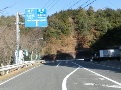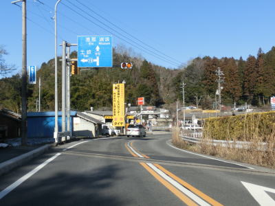 | 集落に差し掛かると勾配は落ち着いて走りやすさが向上する。県境から約2.8km走るとR363陶町大川交差点に突き当たる。瑞浪市の市街地からかなり離れた位置だが、この信号機のない、国道同士の交差点に見えないような交差点がR419の起点である。なお、瑞浪市の市街地に行くには右折してR363を約500m進んで大川交差点からr20に進むルートが最短である。 | ||