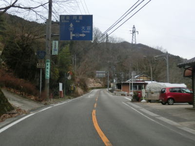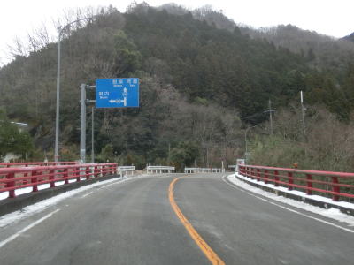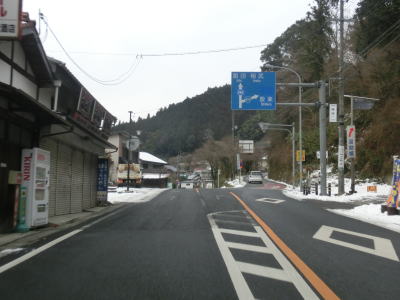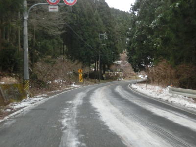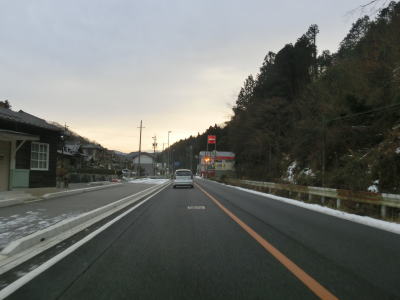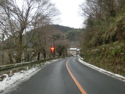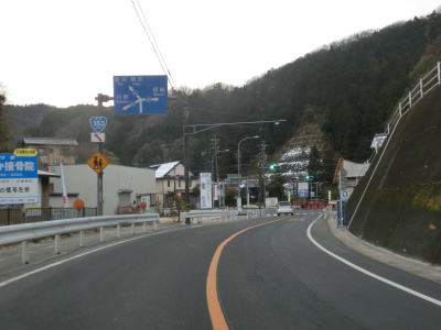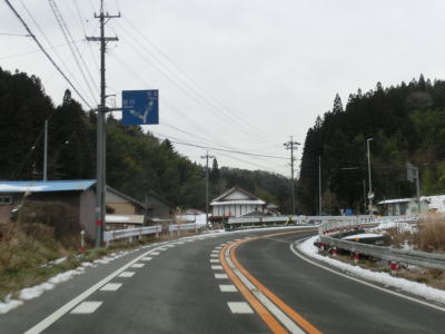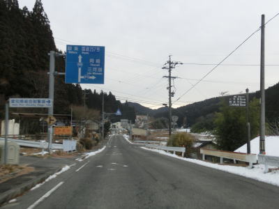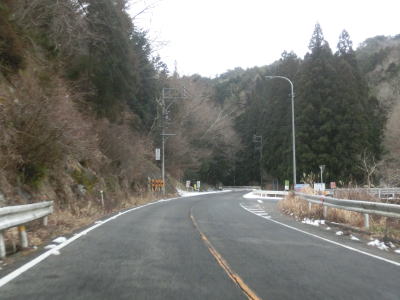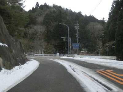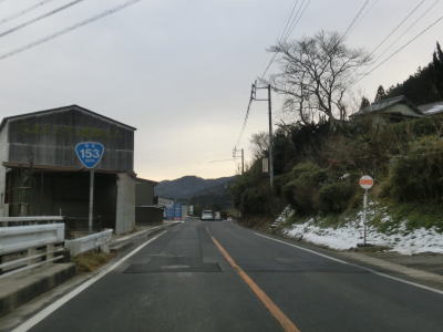 | 愛知r367交差点からの上り勾配を走っていると日当たりが悪いせいもあって路面の雪が多くなる。名もなき峠を越えてやや急な勾配を下り、景色が開けて平坦になる所でR473との交差点を通過する。信号機のないこの交差点から東はR420とR473とが重複しながら設楽・R257方面へ進む。 | ||