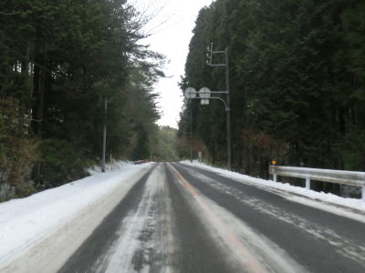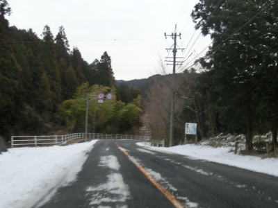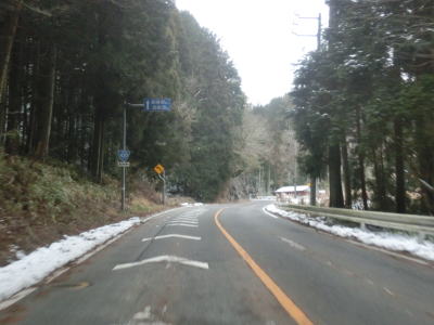 | 31.豊田市東大見町岩名畑では東向き車線だけ追越し可能 | 32.日の当たらない場所には路面にも雪が残っていた | 33.加茂広域農道と交差 |