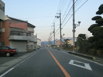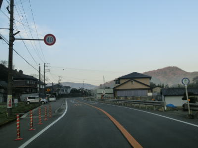 | 市場交差点からも直線道路が続いているが、最上橋からは10%の急勾配を上る。急勾配が終わってからは家屋と果樹園が混在する中を走る。早朝のため交通量が少ないが、幹線国道として機能しており昼間の交通量は多い。 | ||