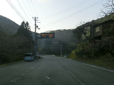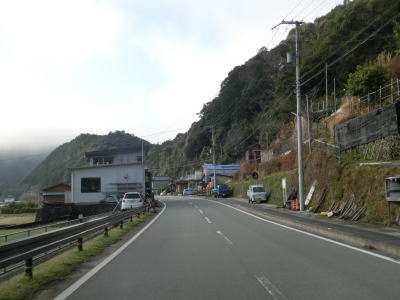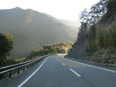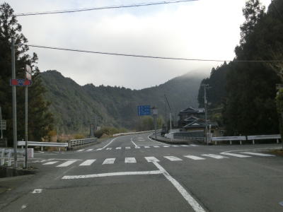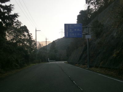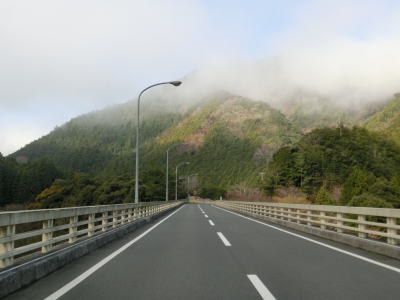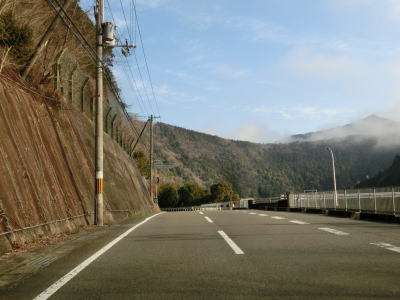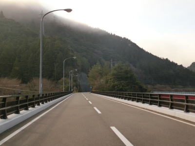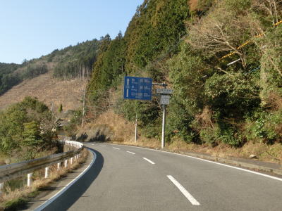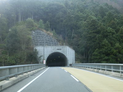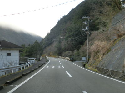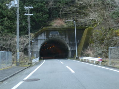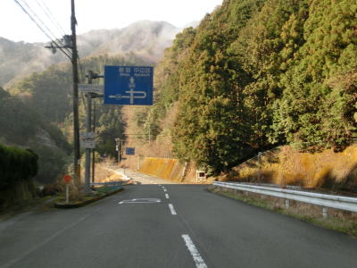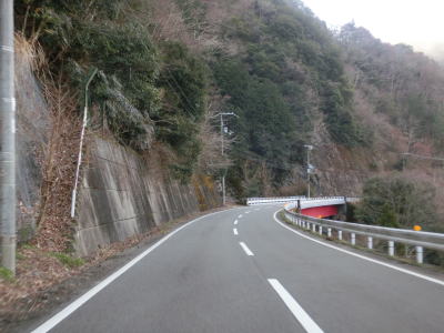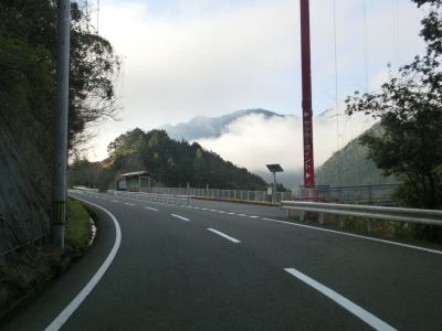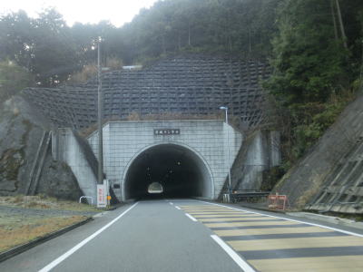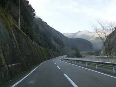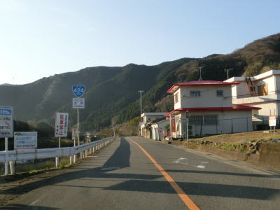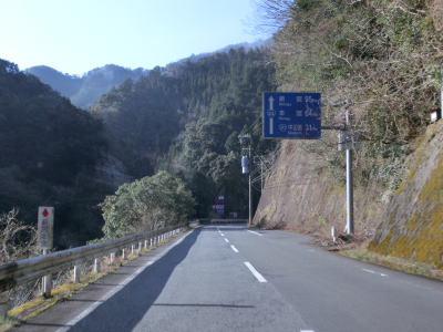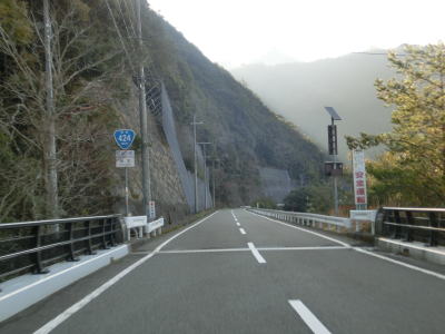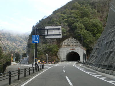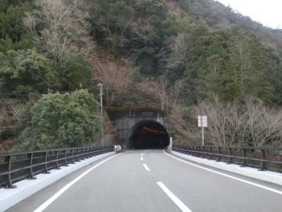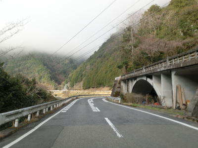 | 酷道として全国に知られているR425が重複しているとは言え2車線の非常に走りやすい道路が続いている。蛇行している日高川を古宮橋と大瀬橋を相次いで渡る。大瀬橋の半部は左にカーブしており、その後は日高川の左岸を走る。いくつかの小さな集落を通り過ぎながら2車線道路を走っていると旧道との交差点を通過した後に甲斐ノ川トンネルをくぐる。 | ||