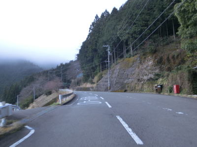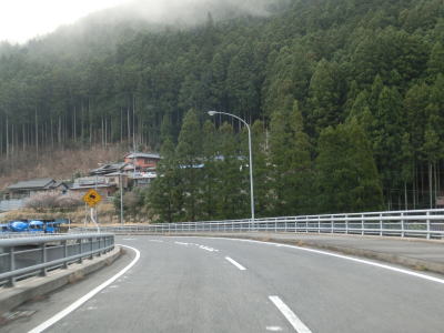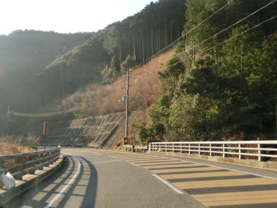 | 右の急カーブを曲がると有田川から離れて支流の修理川の流域を走る。2車線という道路状況に変化はないが、緩やかながら長い上り勾配区間に入る。修理川の右岸を走っていると断続的に家屋が続く修理川集落を通り過ぎる。 | ||